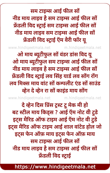 Lyrics of Sometimes I Feel - सम टाइम्स आई फील