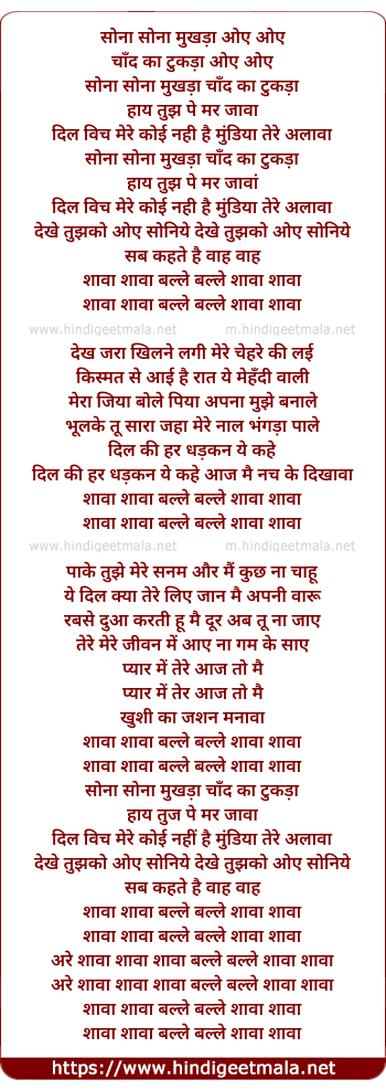 Lyrics of Sona Sona Mukhda - सोना सोना मुखड़ा
