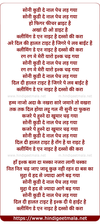 Lyrics of Soni Kudi De Naal - सोनी कुडी दे नाल