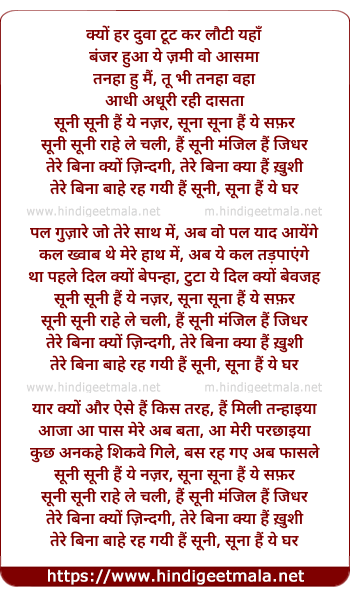 Lyrics of Sooni Sooni, Tere Bina (Rnb) - क्यों हर दुवा टूट कर लौटी यहाँ