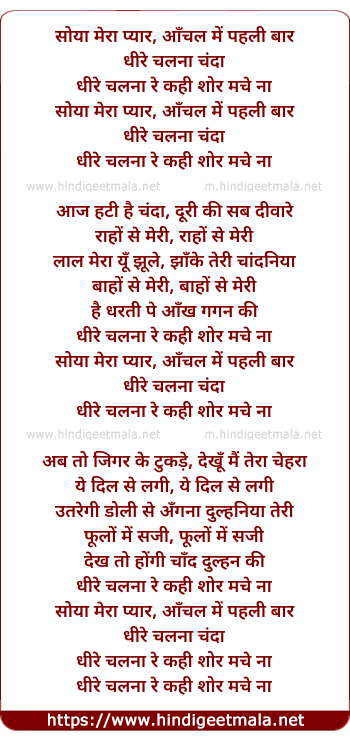 Lyrics of Soya Mera Pyar Aanchal Me (Sad) - सोया मेरा प्यार, आँचल में पहली बार