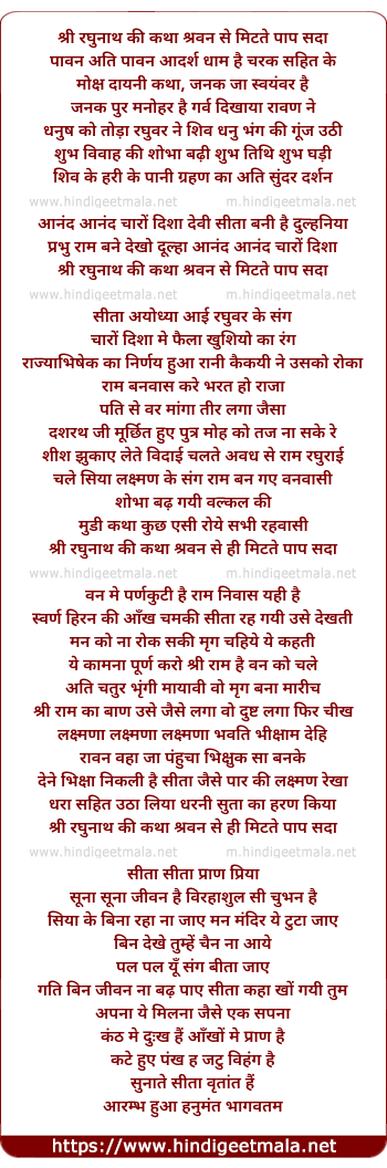 shri raghunath ki katha shrvan se hi mitte paap sada