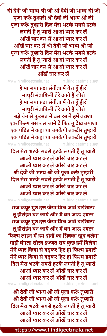 Lyrics of Sree Devi Ji Bhagya Shree Ji - श्री देवी जी भाग्य श्री जी