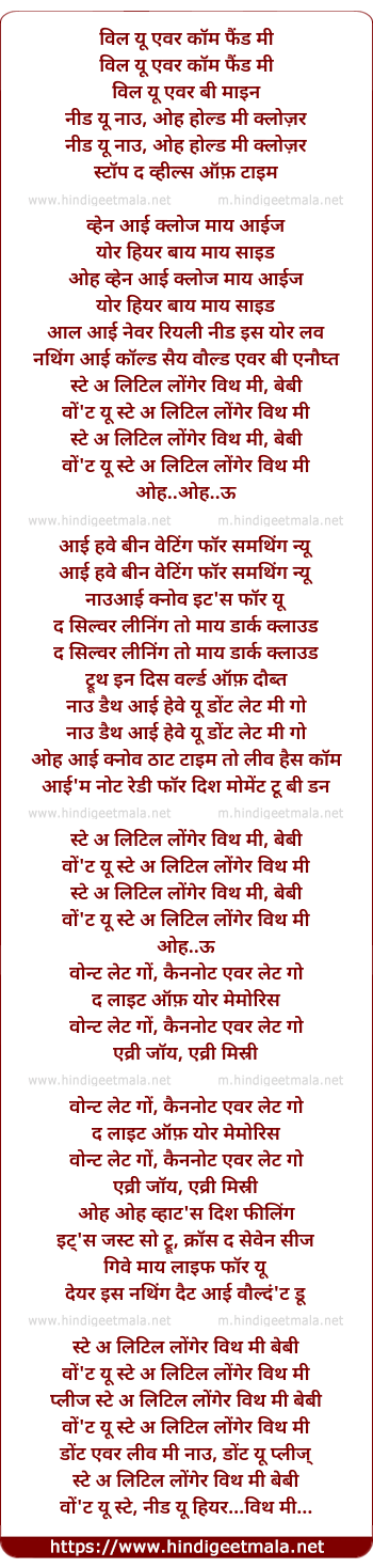 Lyrics of Stay A Little Longer - स्टे अ लिटिल लोंगेर