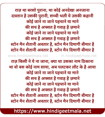 Lyrics of Stone Man Shaitaani Avtaar Hai - स्टोन मैन शैतानी अवतार है