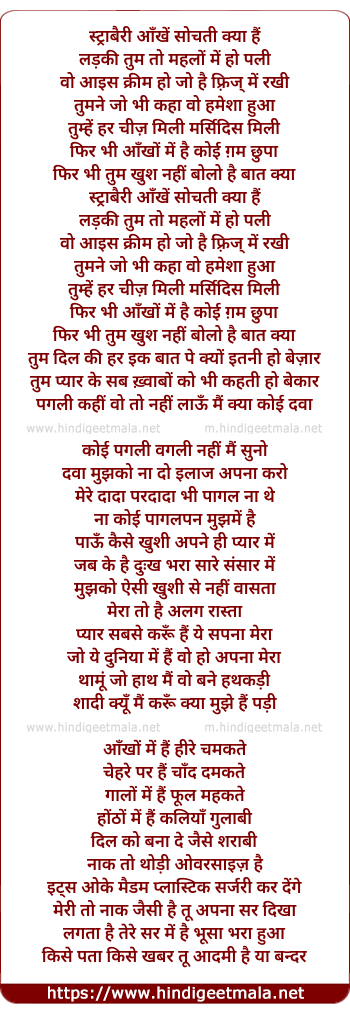 Lyrics of Strawberry Aankhen Sochati Kyaa Hain - स्ट्राबैरी आँखें सोचती क्या हैं