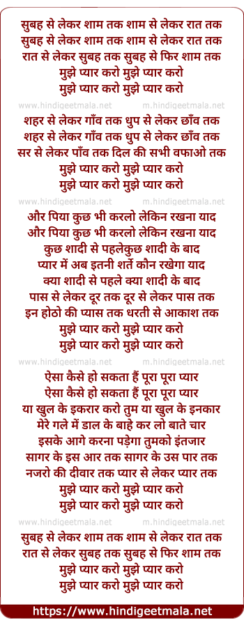 Lyrics of Subah Se Lekar Shaam Tak, Mujhe Pyaar Karo - सुबह से लेकर शाम तक, मुझे प्यार करो