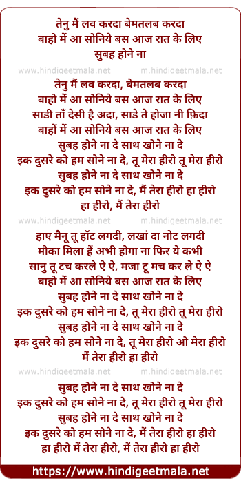 Lyrics of Subha Hone Na De (Remix) - तेनु मैं लव करदा बेमतलब करदा