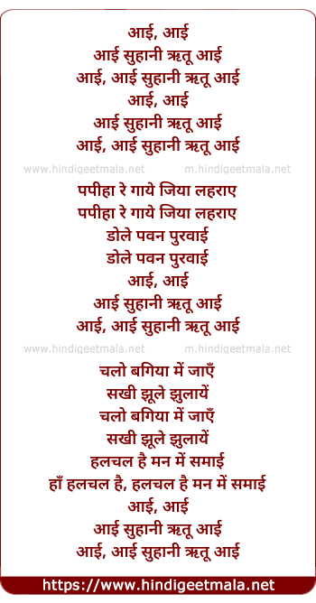 Lyrics of Suhani Ritu Aayi - आई, आई