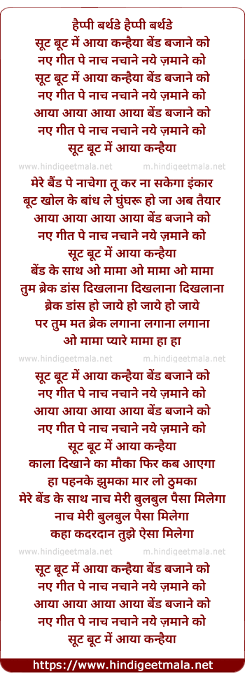 Lyrics of Suit Boot Me Aaya Kanhaiya - सूट बूट में आया कन्हैया
