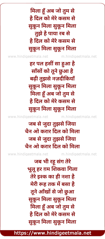 Lyrics of Sukoon Mila - सुकून मिला