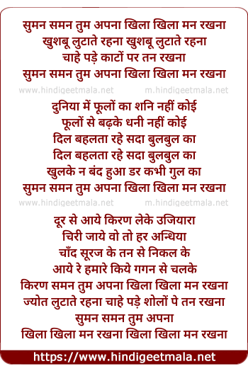 Lyrics of Suman Saman Tum Apna Khila Khila - सुमन समन तुम अपना खिला खिला मन रखना