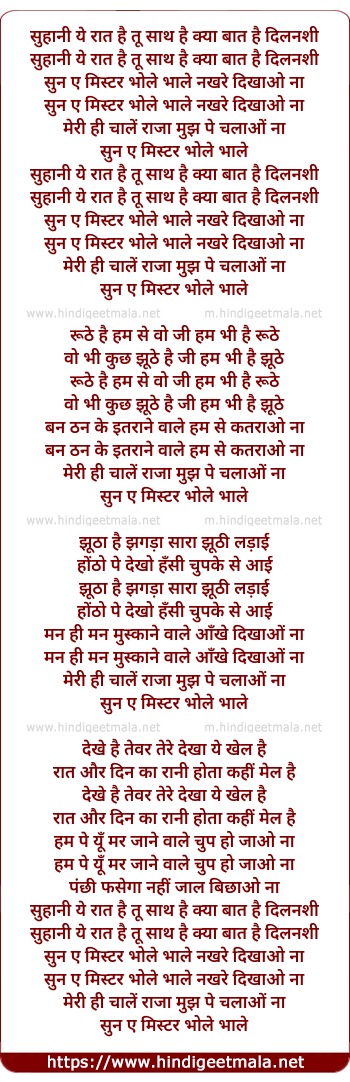 Lyrics of Sun Ae Mister Bhole Bhaale - सुन ए मिस्टर भोले भाले