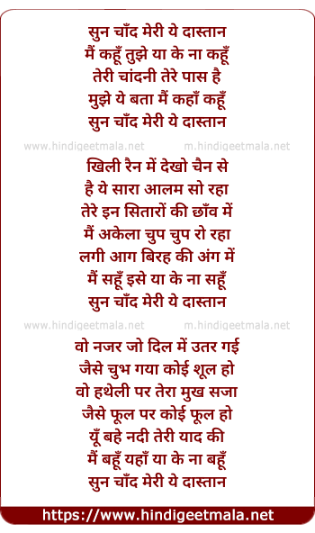 Lyrics of Sun Chand Meri Ye Dasta Mai Kahu Tujhe Ya Ke Na Kahu - सुन चाँद मेरी ये दास्तान मैं कहूँ तुझे या के ना कहूँ