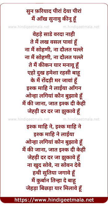 Lyrics of Sun Fariyaad Peeraan Deya Peera (Hoo) - सुन फ़रियाद पीरां देया पीरां