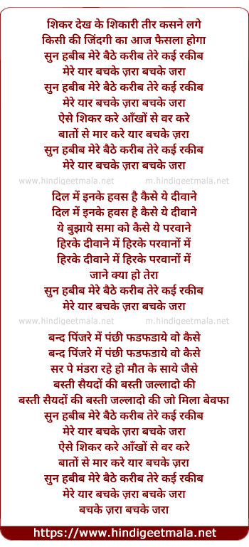 Lyrics of Sun Habib Mere Baith Kareeb - सुन हबीब मेरे बैठे करीब