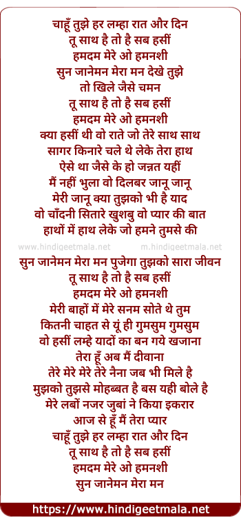 Lyrics of Sun Jaan-E-Man - चाहूँ तुझे हर लम्हा रात और दिन