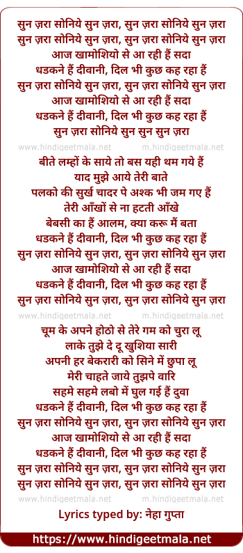 Lyrics of Sun Jara Soniye Sun Jara - सुन ज़रा सोनिये सुन ज़रा