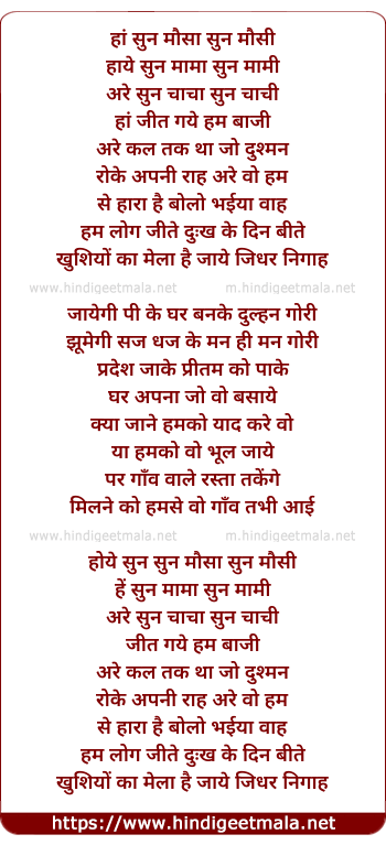 Lyrics of Sun Mausa Sun Mausi - सुन मौसा सुन मौसी