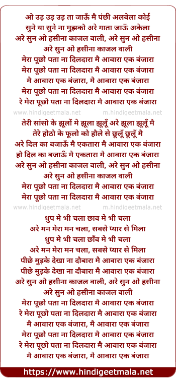 mai aawara ek banjara, mai aawara ek banjara