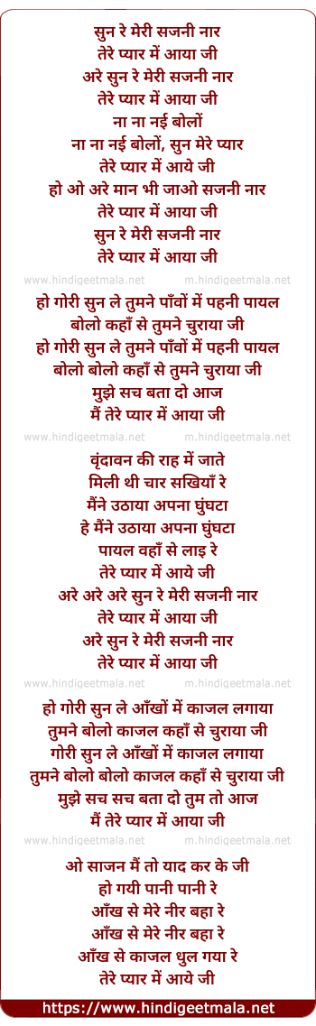 Lyrics of Sun Re Meri Sajni Naar - सुन रे मेरी सजनी नार