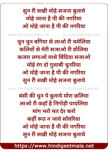 "sun rii sakhii mohe sajanaa bulaaye, mohe jaanaa hai pii kii nagariyaa" -