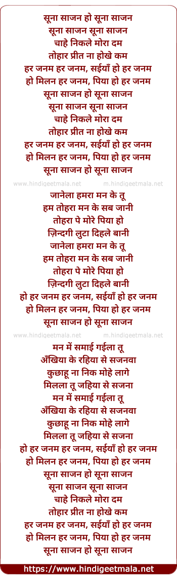 Lyrics of Sun Sajan Ho Sun Sajan - सूना साजन हो सूना साजन