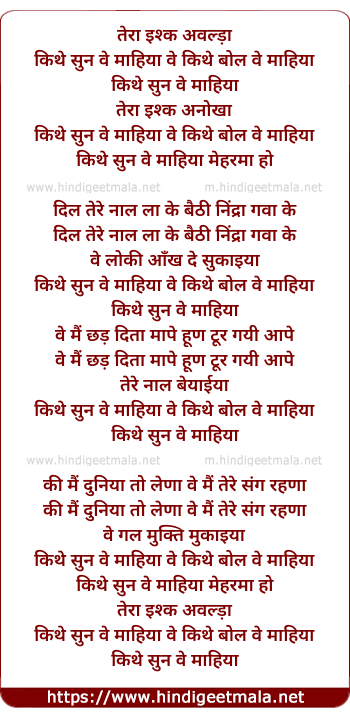 Lyrics of Sun Ve Mahiya - तेरा इश्क अवल्ड़ा