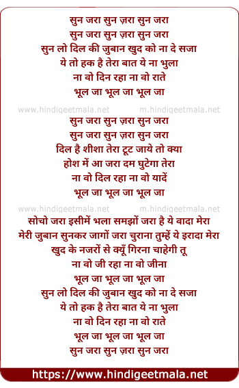 Lyrics of Sun Zara - सुन जरा सुन ज़रा सुन जरा