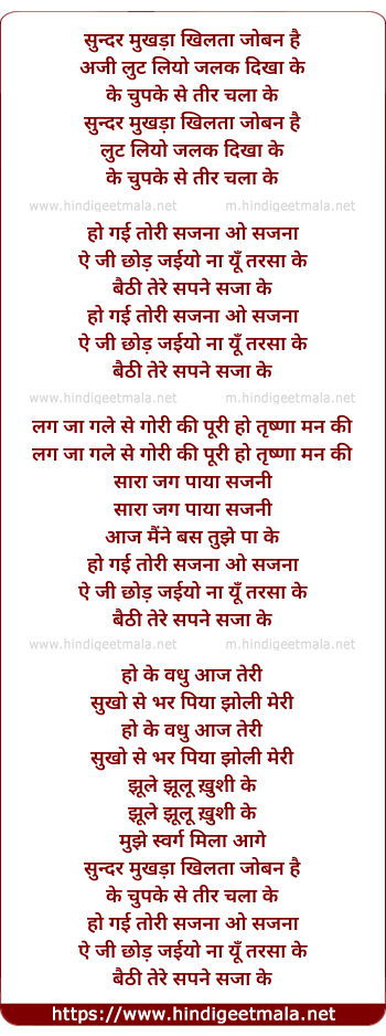 Lyrics of Sundar Mukhda Khilta Jovan - सुन्दर मुखड़ा खिलता जोबन