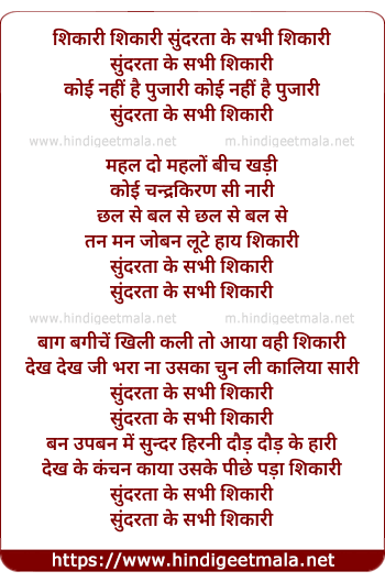 shikaree shikaree sundarata ke sabhee shikaree