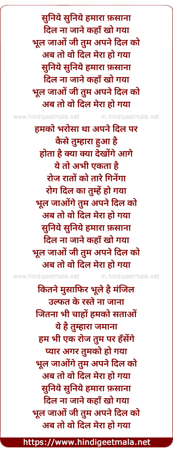 Lyrics of Suniye Suniye Hamara Fasana - सुनिये सुनिये हमारा फ़साना
