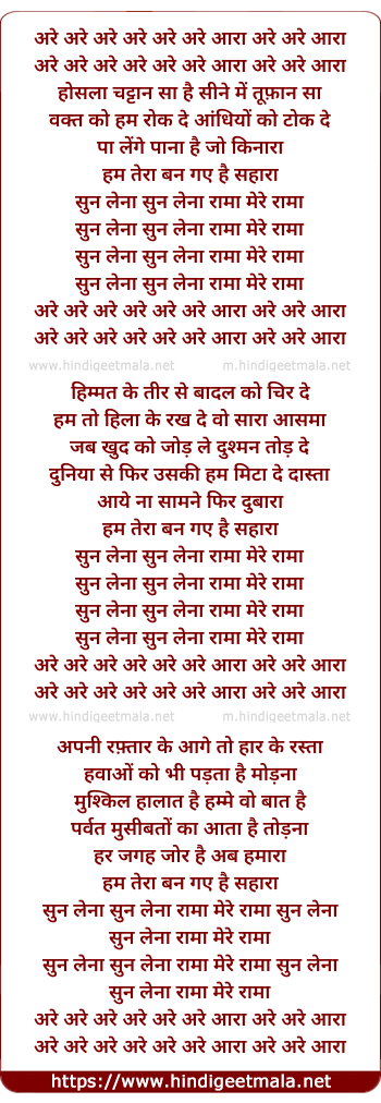 Lyrics of Sunlena Sunlena - अरे अरे अरे अरे अरे अरे आरा अरे अरे आरा