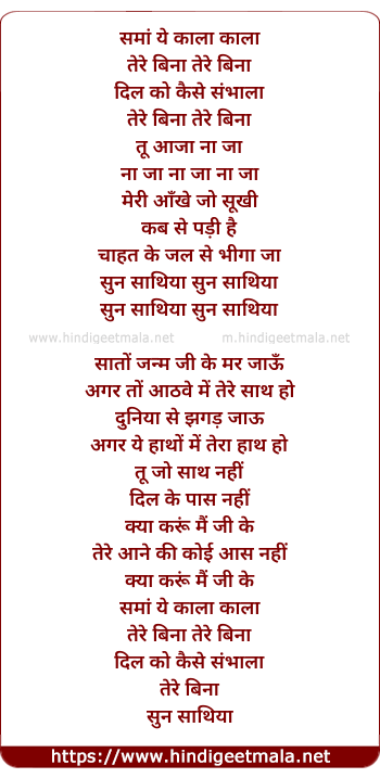 Lyrics of Sunn Saathiya - समां ये काला काला