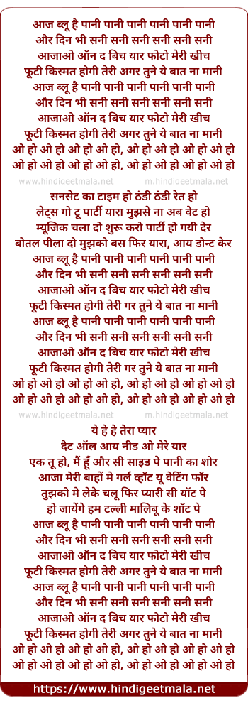 Aaj blue hai paani paani paani Aur din bhi sunny sunny sunny . I'm left