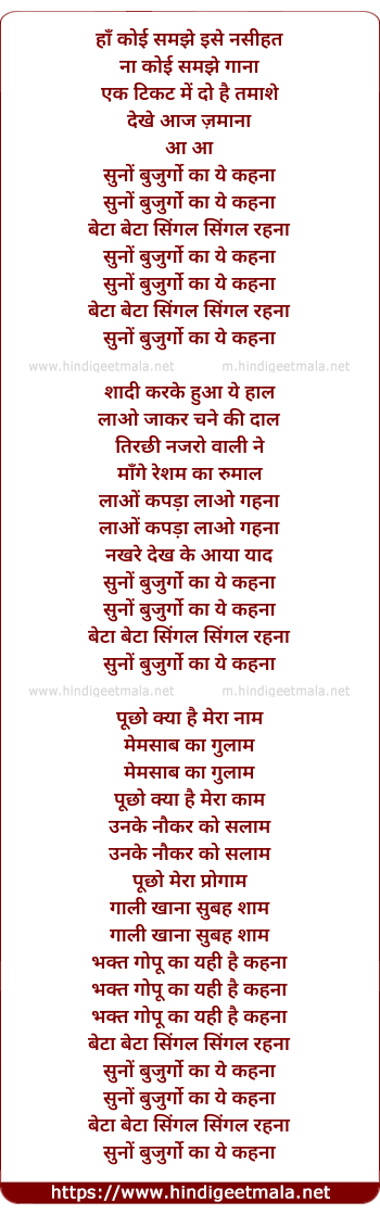 Lyrics of Suno Buzurgo Ka Ye Kehna - सुनों बुजुर्गों का ये कहना