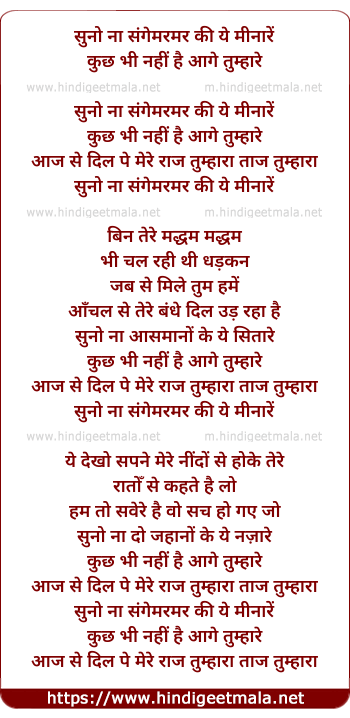 Lyrics of Suno Na Sangemarmar - सुनो ना संगेमरमर की ये मीनारें