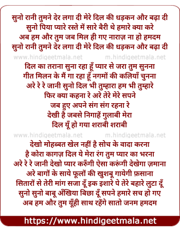 suno rani tumne der laga di mere dil ki dhadkan or badha di