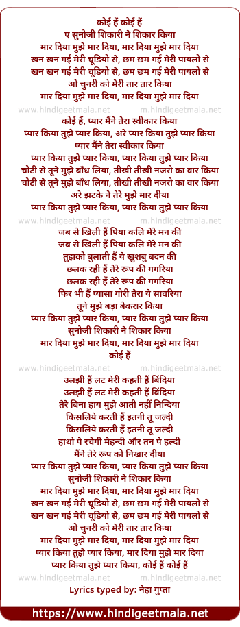 Lyrics of Sunoji Shikari Ne Shikaar Kiya, Maar Diya Mujhe - सुनोजी शिकारी ने शिकार किया, मार दिया मुझे