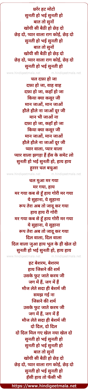 Lyrics of Sunti Ho Baat Sunti Ho - सुनती हो बात सुनती हो