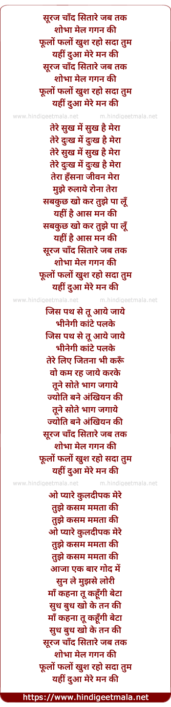 Lyrics of Suraj Chaand Sitare Jab Tak - सूरज चाँद सितारे जब तक