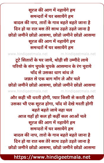 chhodo jamine chhodo aasma, chhodo jamine chhodo aasma