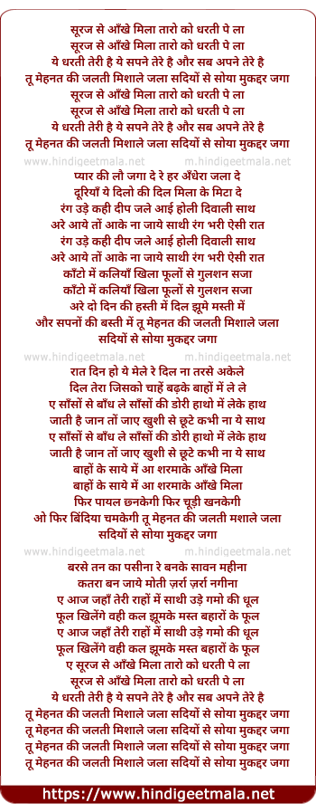 Lyrics of Suraj Se Aankhe Mila - सूरज से आँखे मिला