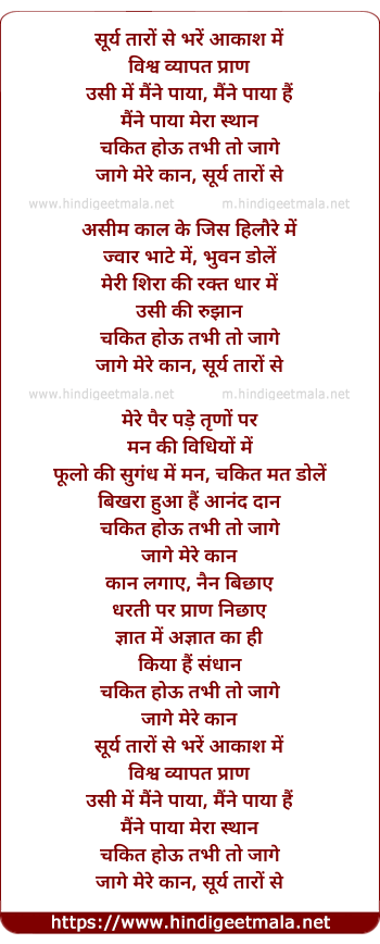 Lyrics of Surya Taron Se - सूर्य तारों से भरें आकाश में