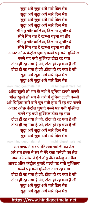 sutta aye sutta aye mare dil mera
