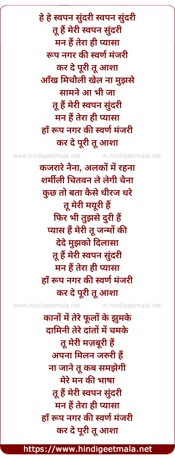 Lyrics of Swapna Sundaree - स्वपन सुंदरी
