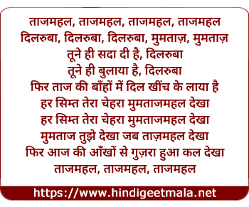 Lyrics of Taajamahal, Tune Hi Sadaa Di Hai - ताजमहल, तूने ही सदा दी है