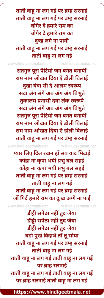 Lyrics of Taati Wahu Na Lag Gayi - ताती वाहू ना लग गई पर ब्रम्ह सरनाई
