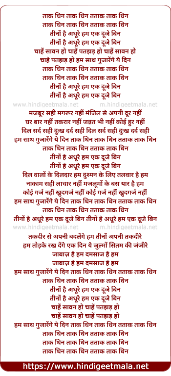 hum saath gujarenge ye din taak dhin taak dhin tatak taak dhin