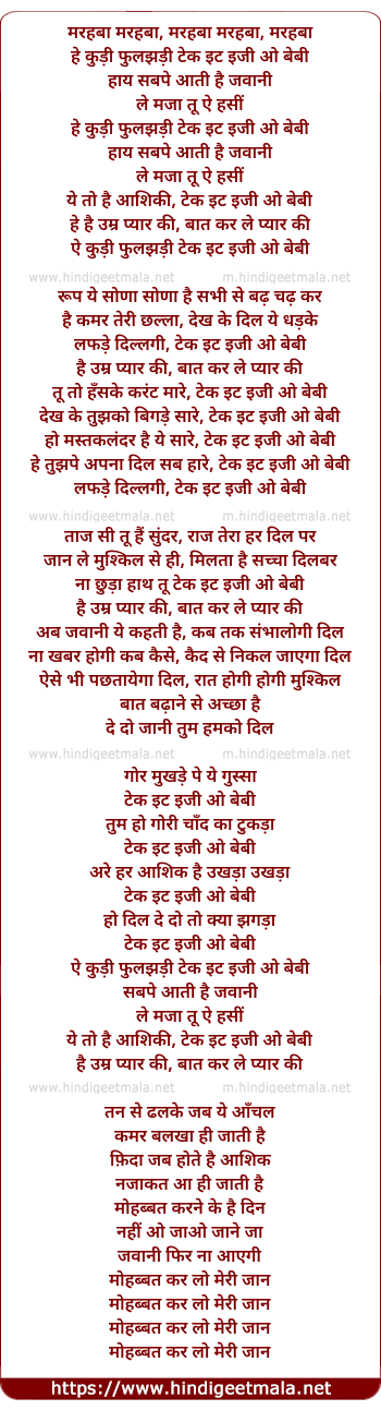 Lyrics of Take It Easy O Baby - टेक इट इजी ओ बेबी